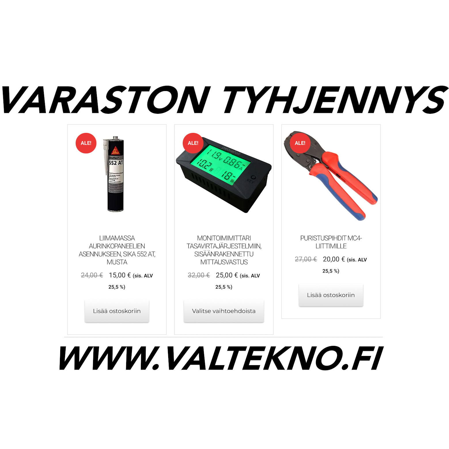 Valikoimistamme löytyvät laadukkaat aurinkopaneelit, invertterit, asennustarvikkeet ja paljon muuta. Lisäämme valikoimaamme jatkuvasti uusia tuotteita, joten kannattaa käydä katsomassa myöhemminkin!